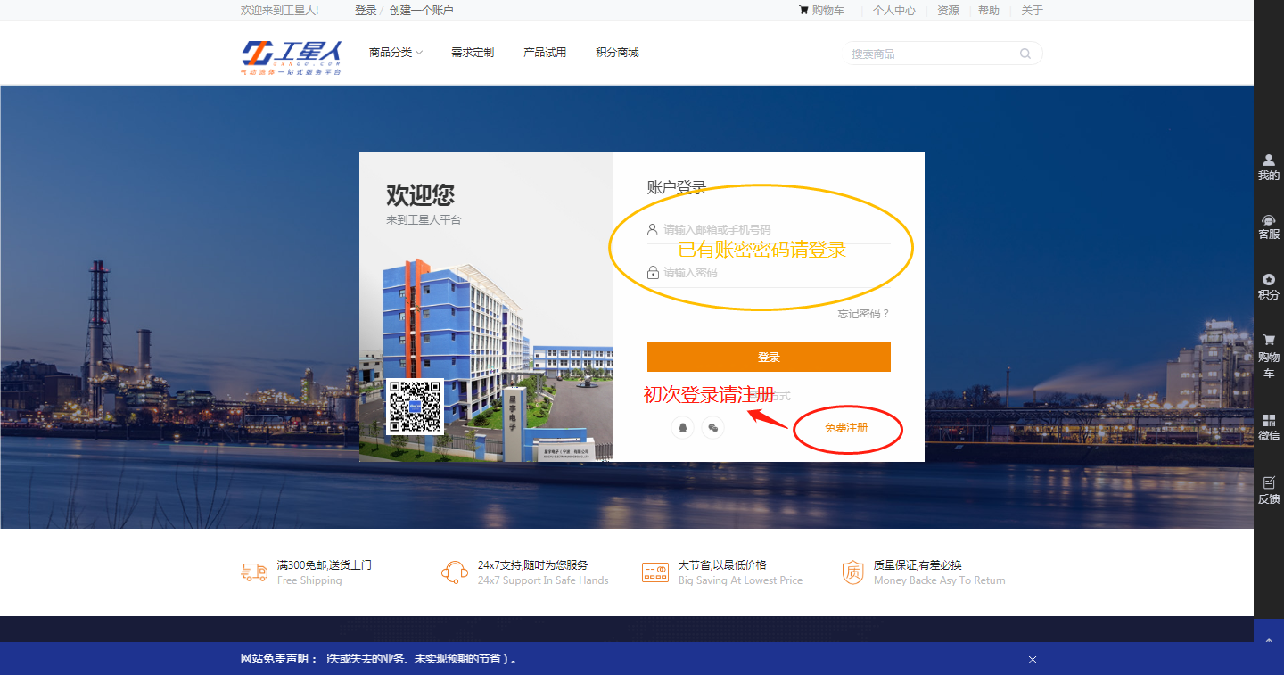 4.如果提示密码不正确,请检查密码输入是否正确,密码区分大小写,或点此进入忘记密码。个人电脑建议使用浏览器保存密码的功能,方便下次登录工星人工业平台!